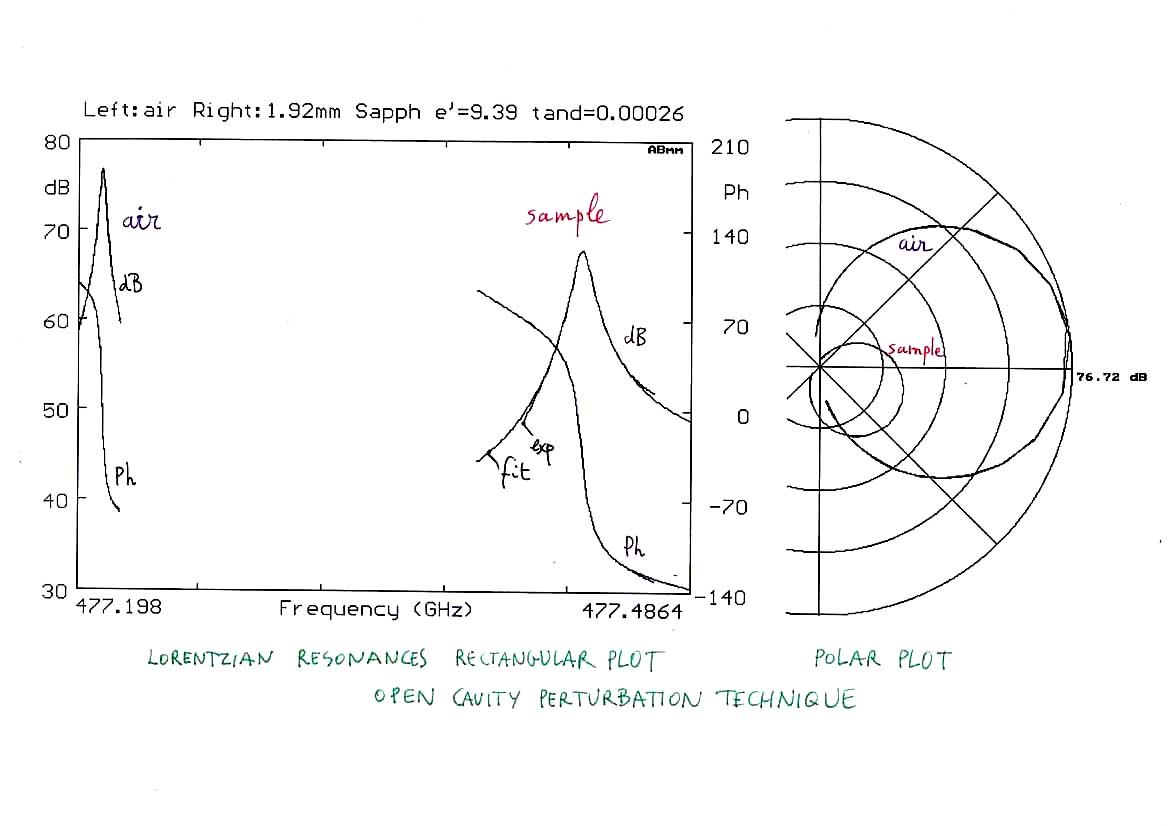empty cavity, and of the cavity with the sample. Signal amplitude scale